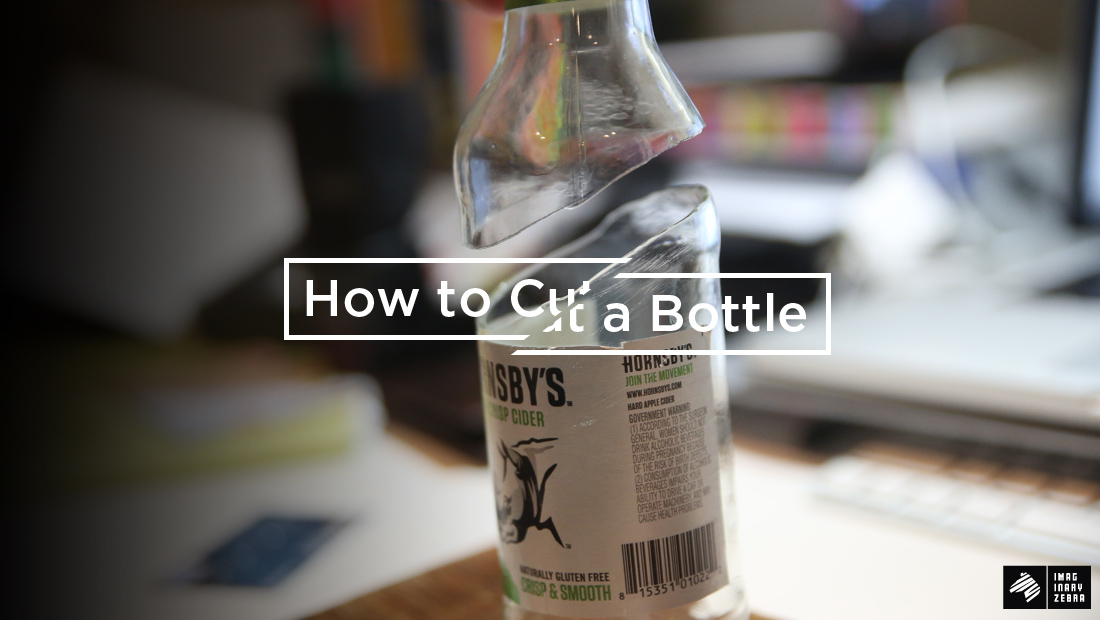 When you use the glass cutter, don’t use it to cut through the glass. You only use the cutter to trace across the bottle, making a minute line on the surface of the bottle. Do it slowly and steadily. Due to the round surface of the bottle, it’s easy to slip and create deviating lines from the original path. You don’t want that. Just trace the sharpie line smoothly, it’d be where the bottle would snap later.