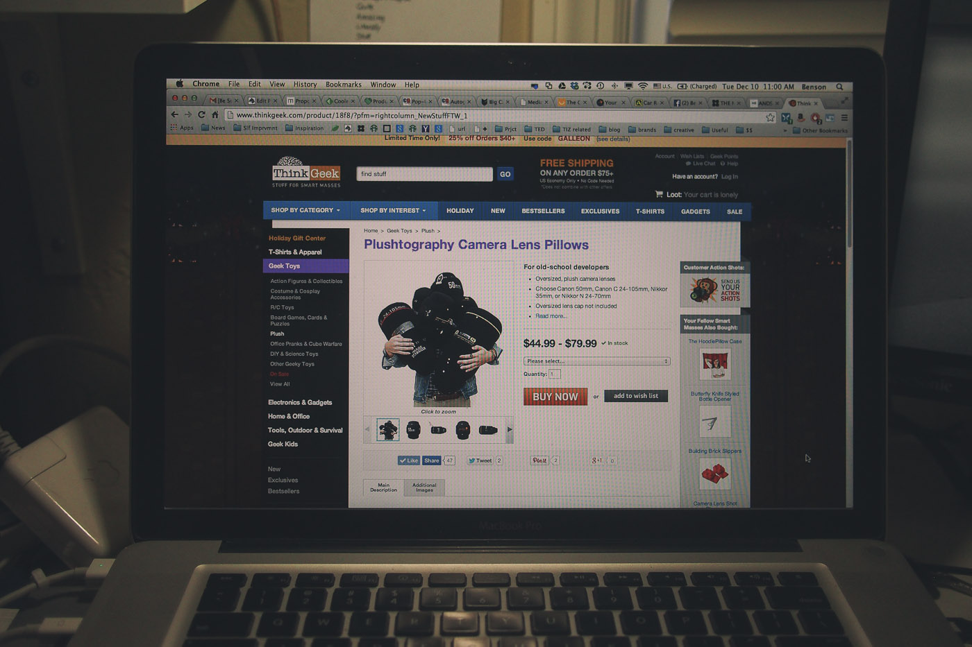 The hard work has paid off. The project I run with two brilliant partners, Christine & Kevin, reached a milestone today. Plushtography is now part of the official products of ThinkGeek, a site that I’ve been a big fan of. I’ve also shopped there frequently for oddities and intriguing products like cat headed buddha and bacon toothpaste. They carry assorted unique products and I’m very proud to be one amongst them.