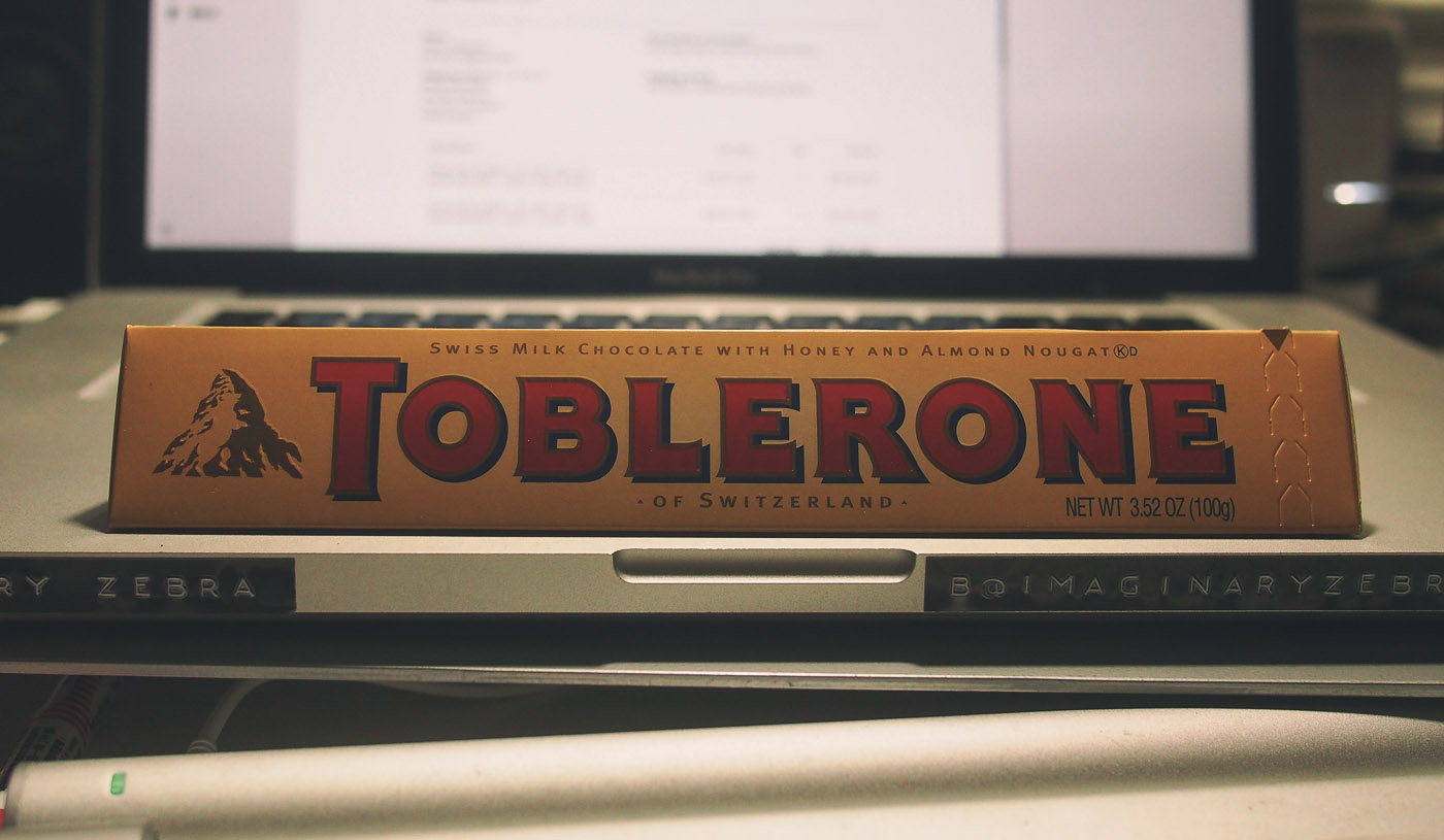 Yet another work day. But, I did spice it up with a bar of Toblerone Swiss chocolate.